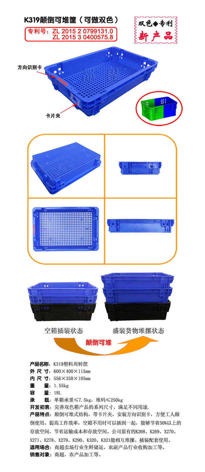 | 备 注: | 双色箱系列,适用商超卖场行业生鲜储运,农副产品行业收购加工等。 |